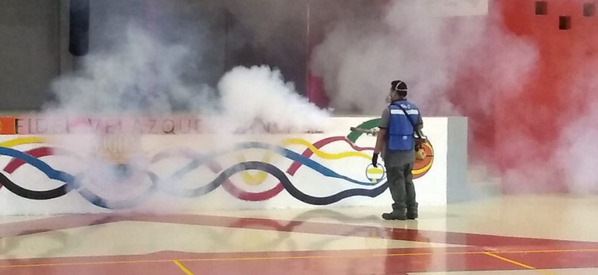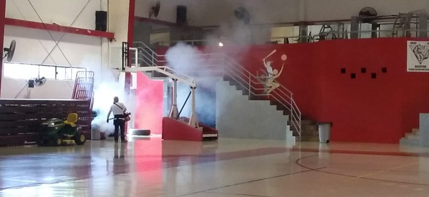 Paralelo a la reunión que con la representación del alcalde Mario Alberto López Hernández presidió el secretario del Ayuntamiento, Federico Fernández Morales se realizaron acciones de sanitización en los espacios que serían utilizados como refugios temporales en caso de requerirse.