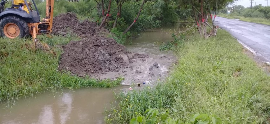 Por parte de la Secretaría de Desarrollo Urbano y Ecología se trabaja en limpieza y desazolve de drenes, para que éstos se encuentren listos para el desfogue del agua, en caso de lluvias abundantes.