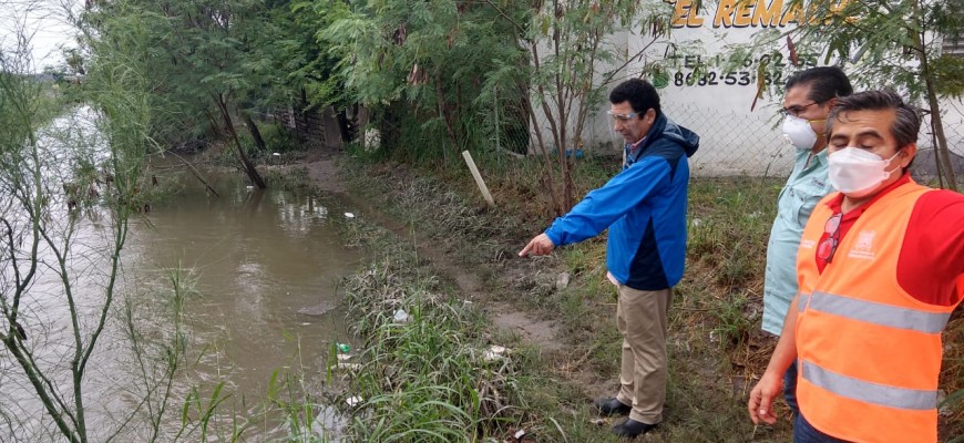 Visitó algunos de los principales drenes de la ciudad, en donde hubo necesidad retirar tapones de tierra que impedían el flujo del agua, entre ellos, el Dren conocido como Periférico y más hacia el sur de la ciudad el Emisor Principal, a la altura de la avenida Portes Gil.