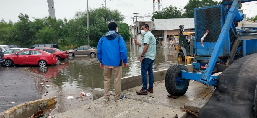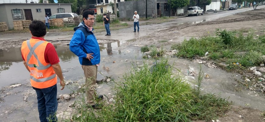 También constató los trabajos que realiza el personal de la Junta de Aguas y Drenaje en colonias anegadas, entre ellas, Los Sauces, una de las zonas más afectadas con las precipitaciones pluviales.