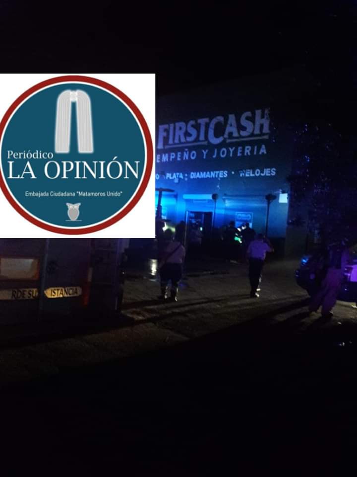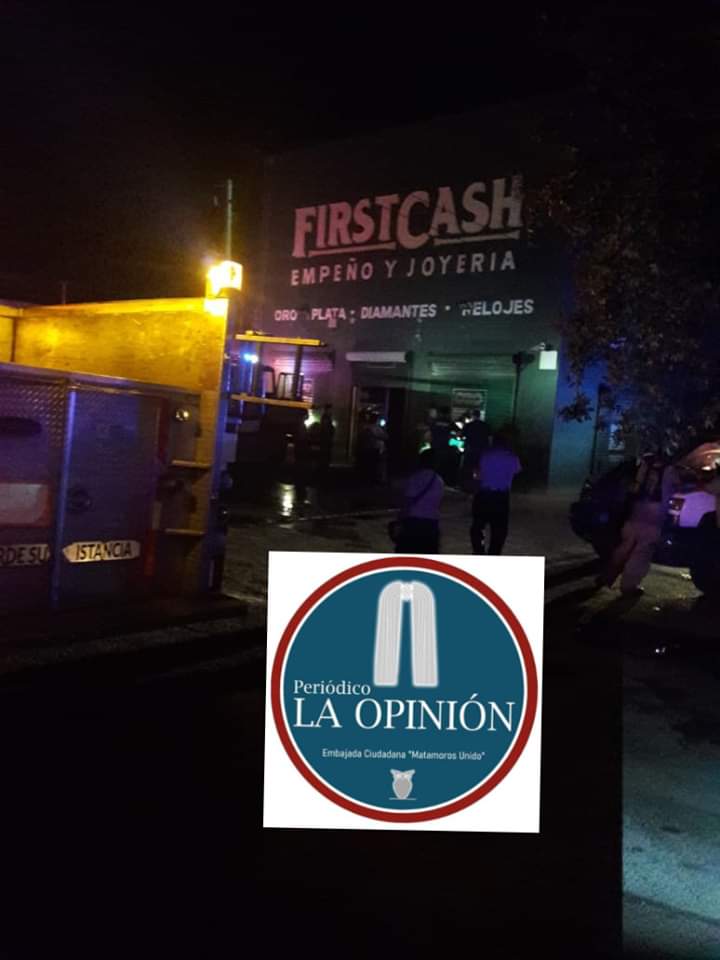 Una fuerte movilizacion de elementos de Bomberos y de Proteccion Civil se registró hoy en la noche, al ocurrir un incendio en la casa de empeño First Cash, ubicada en la avenida Sendero Nacional y carretera a Reynosa.