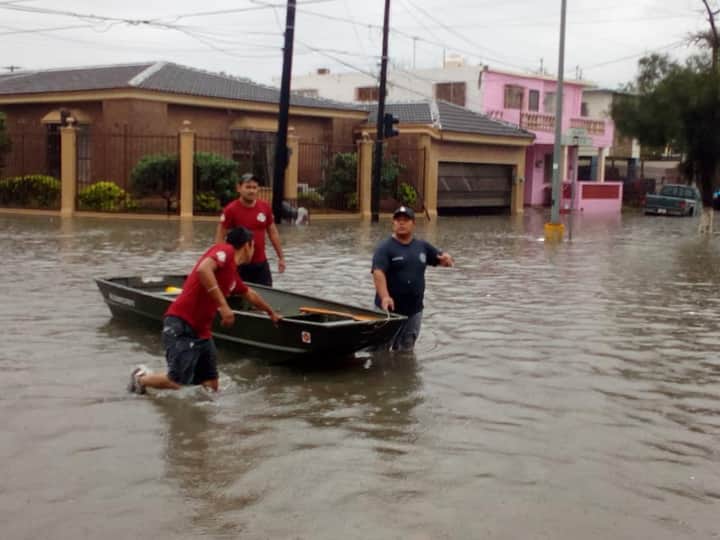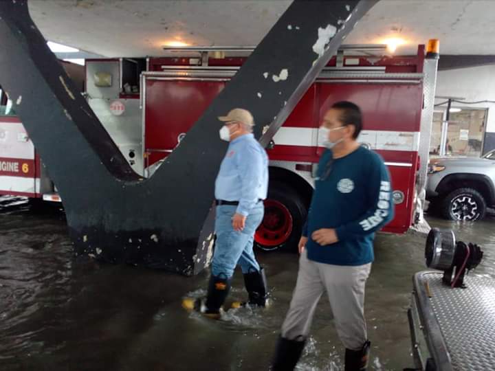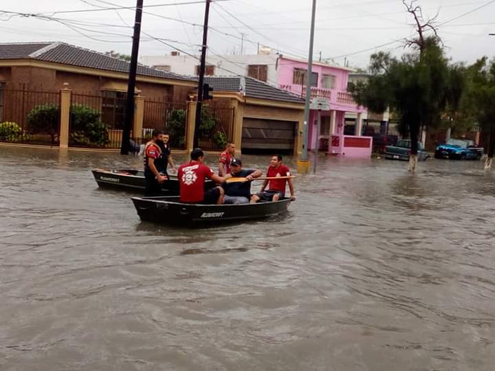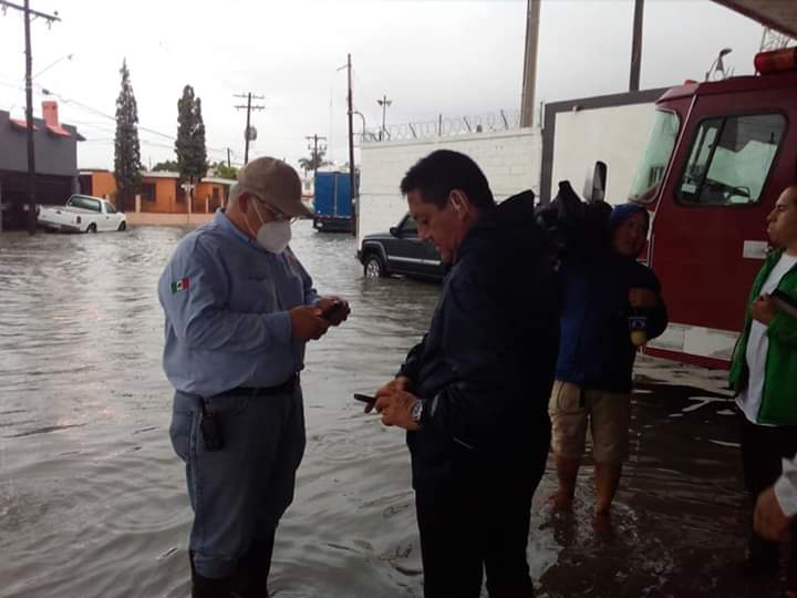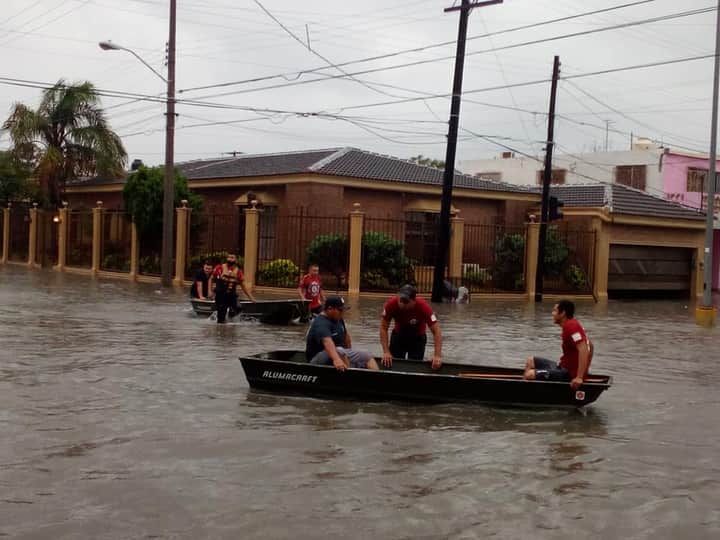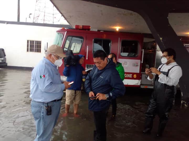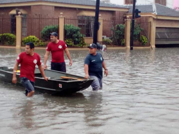 Los heroicos Bomberos y Protección civil apoyando para sacar a las familias que requieran ayuda.