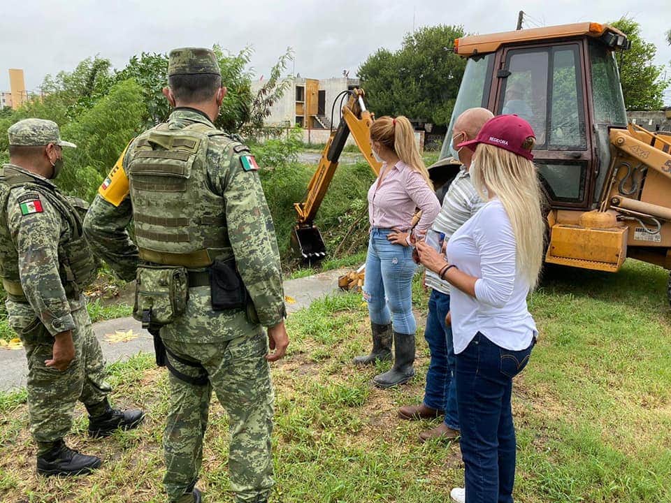 En Matamoros, Administración Municipal, JAD, Marina, Sedena y dependencias estatales y federales, coordinados en una gran labor para hacer fluír el agua pronto de las áreas inundadas por Hanna.