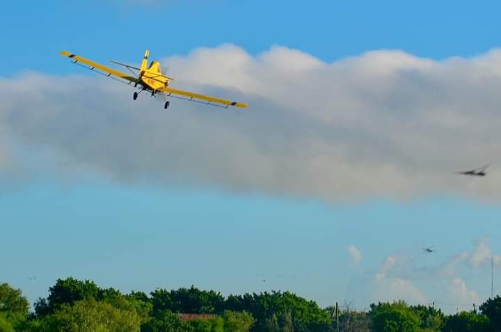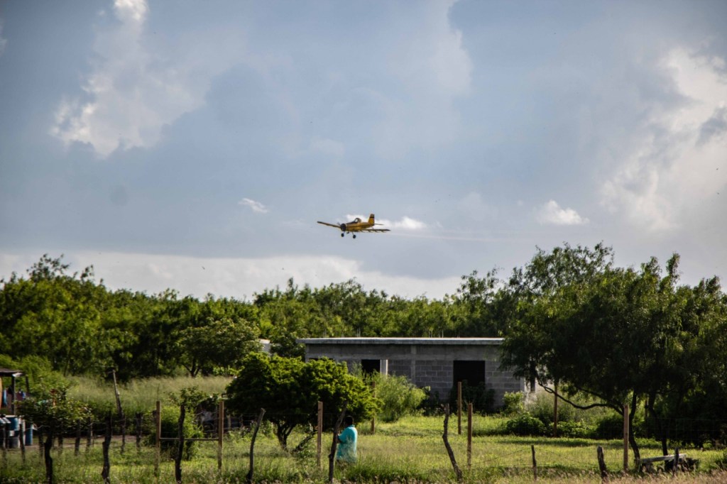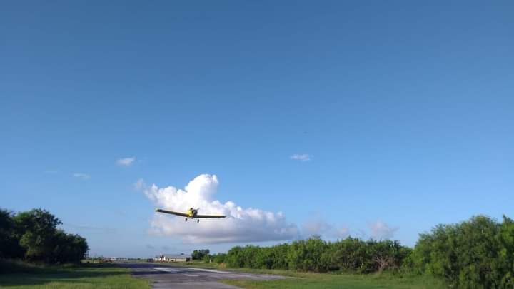 La avioneta contratada por el Gobierno Municipal de Matamoros inició los trabajos de abatización en ejidos del sur-oriente de la ciudad, entre ellos, el Moquetito, Francisco I. Madero, Pacheco, Laguna Honda, 5 de Mayo y Quijano.