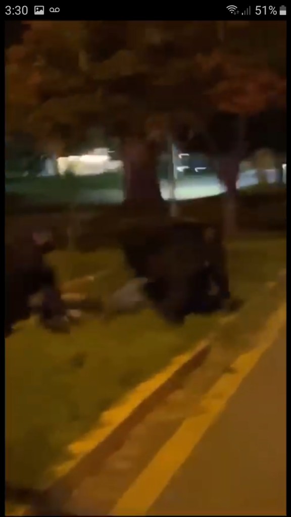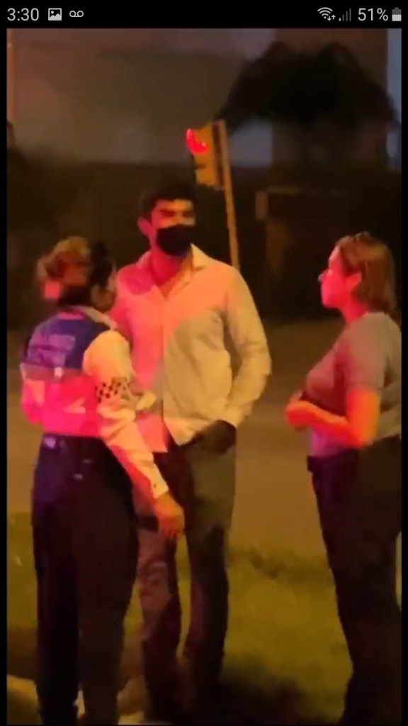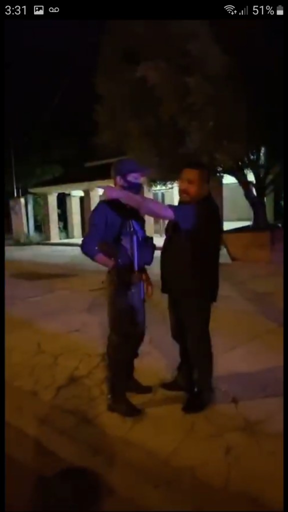 Se puede observar que la transmisión se da a una distancia aproximada a 8 metros entre reportero e implicados del percance, sin embargo el oficial arremetió y con su pecho comenzó a empujarlo hacia atrás para volver a recalcar que cortara la transmisión argumentando que estaba “grabando conversaciones ajenas”.
