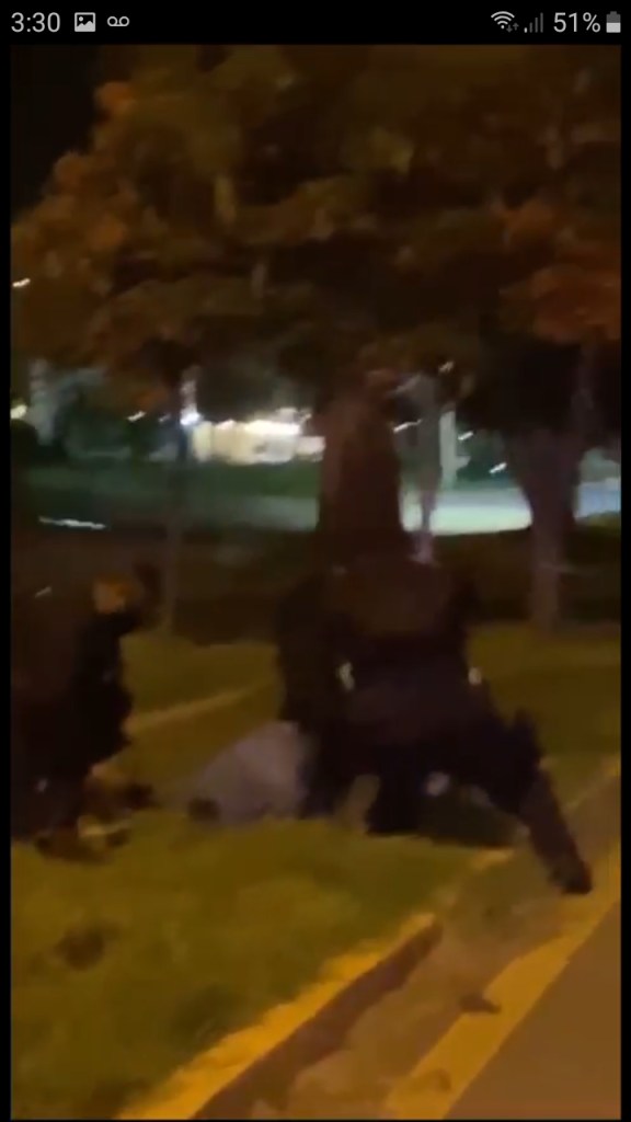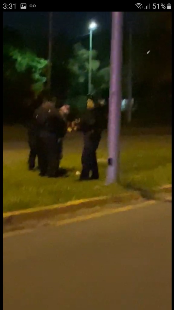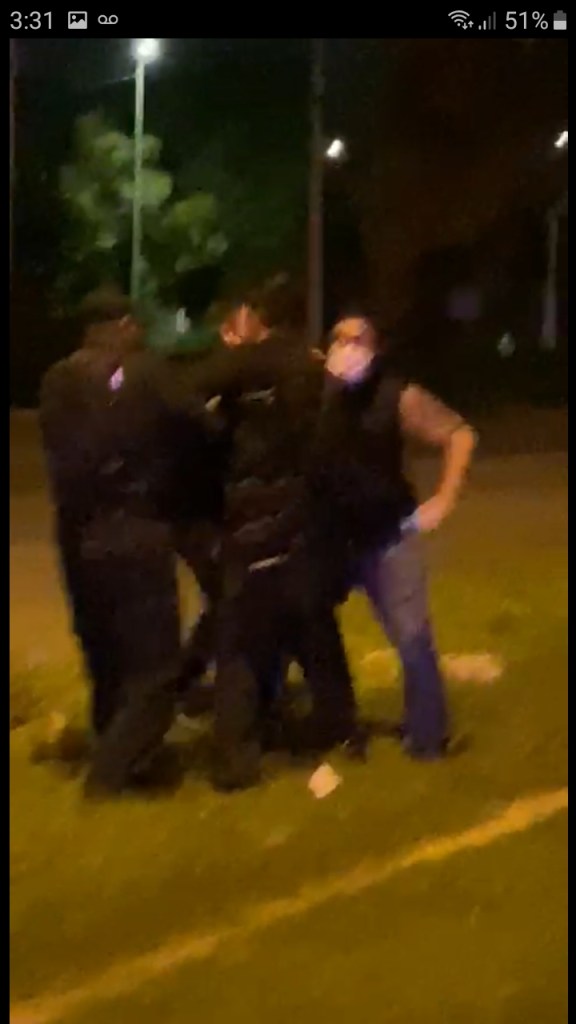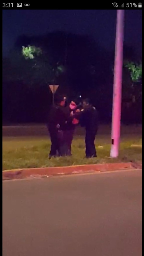 CiudadVictoira #Tamaulipas .-Cerca de los primeros minutos de este jueves en la avenida Familia Rotaria, frente a lo que fue la tienda La Mega, un grupo de agentes de la policía estatal hizo uso de su fuerza para detener al periodista Osberto Vera Quintero al acusarlo que estaba entorpeciendo las labores policiales mientras él informaba a la comunidad lo que estaba sucediendo.