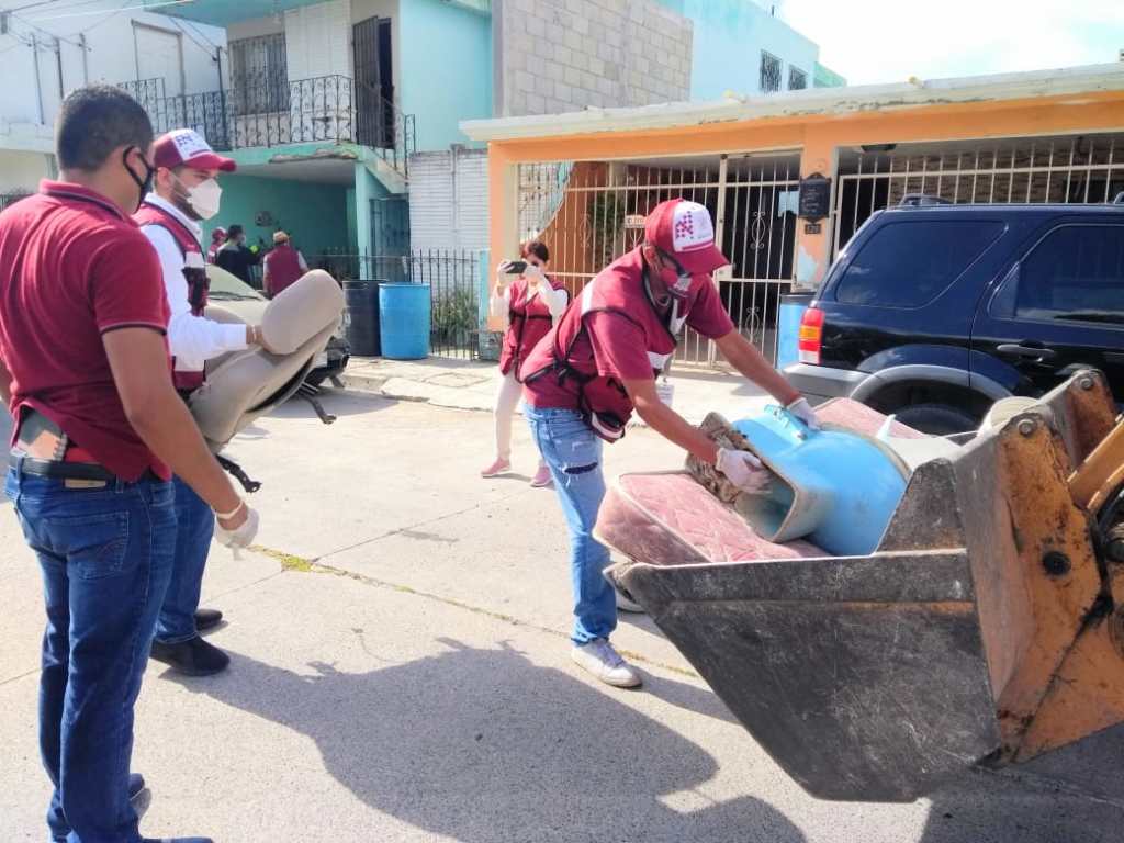 El personal de la Secretaría de Desarrollo y Bienestar Social recorrió los domicilios invitando a las familias a sacar todo tipo de cacharros viejos, en tanto que la Tercera Jurisdicción Sanitaria entregó paquetes de abate para aplicar en aquellos contenedores de agua limpia, que son lugares propicios para la reproducción del mosco, como puede ser un tinaco.