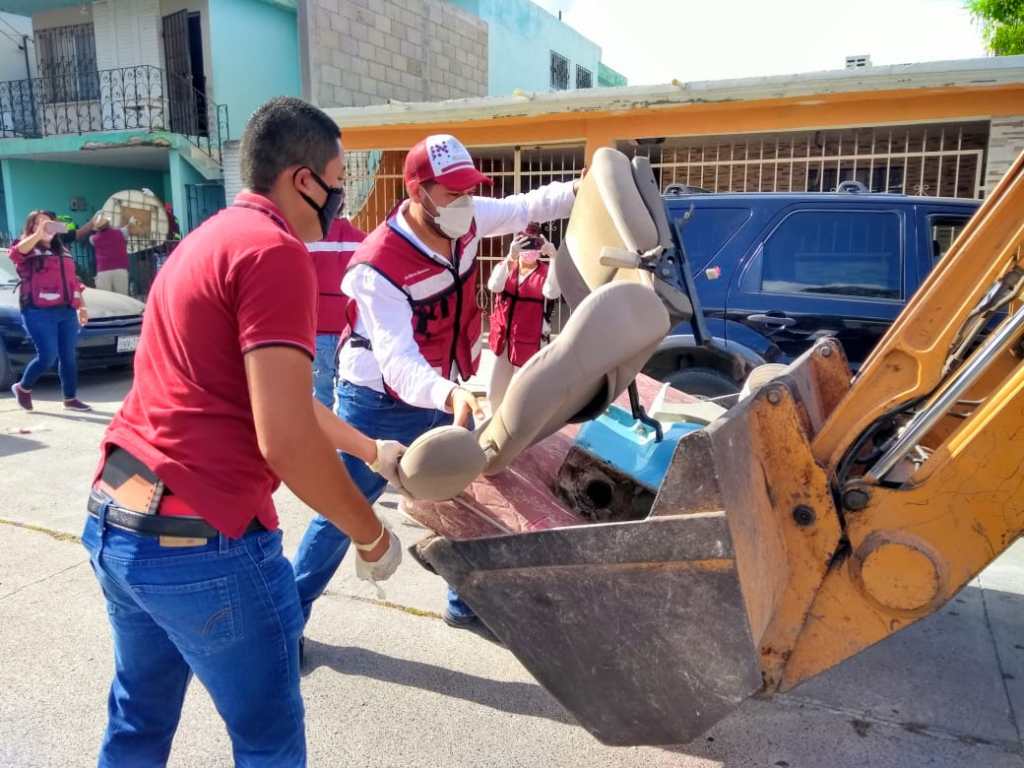 En la puesta en marcha del programa también estuvo presente el secretario de Servicios Públicos Municipales, Guillermo Villasana Velázquez con parte del equipo de Limpieza Pública y Espacios Públicos, quienes utilizaron varios camiones de limpieza, un trascabo y suficiente equipo humano para dejar libre de cacharros esos sectores de la ciudad.