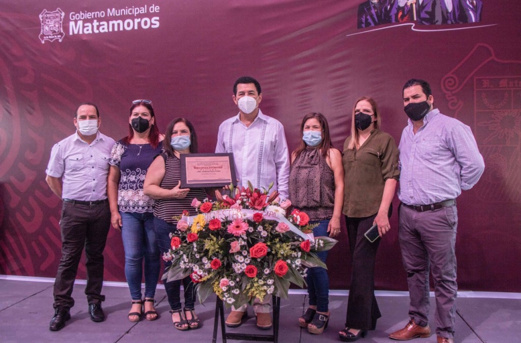 Homenaje a la Maestra Amada Gloria Guerra Cavazos, quien por muchos años fue líder de la colonia Independencia, por parte del alcalde Mario Alberto López Hernández.