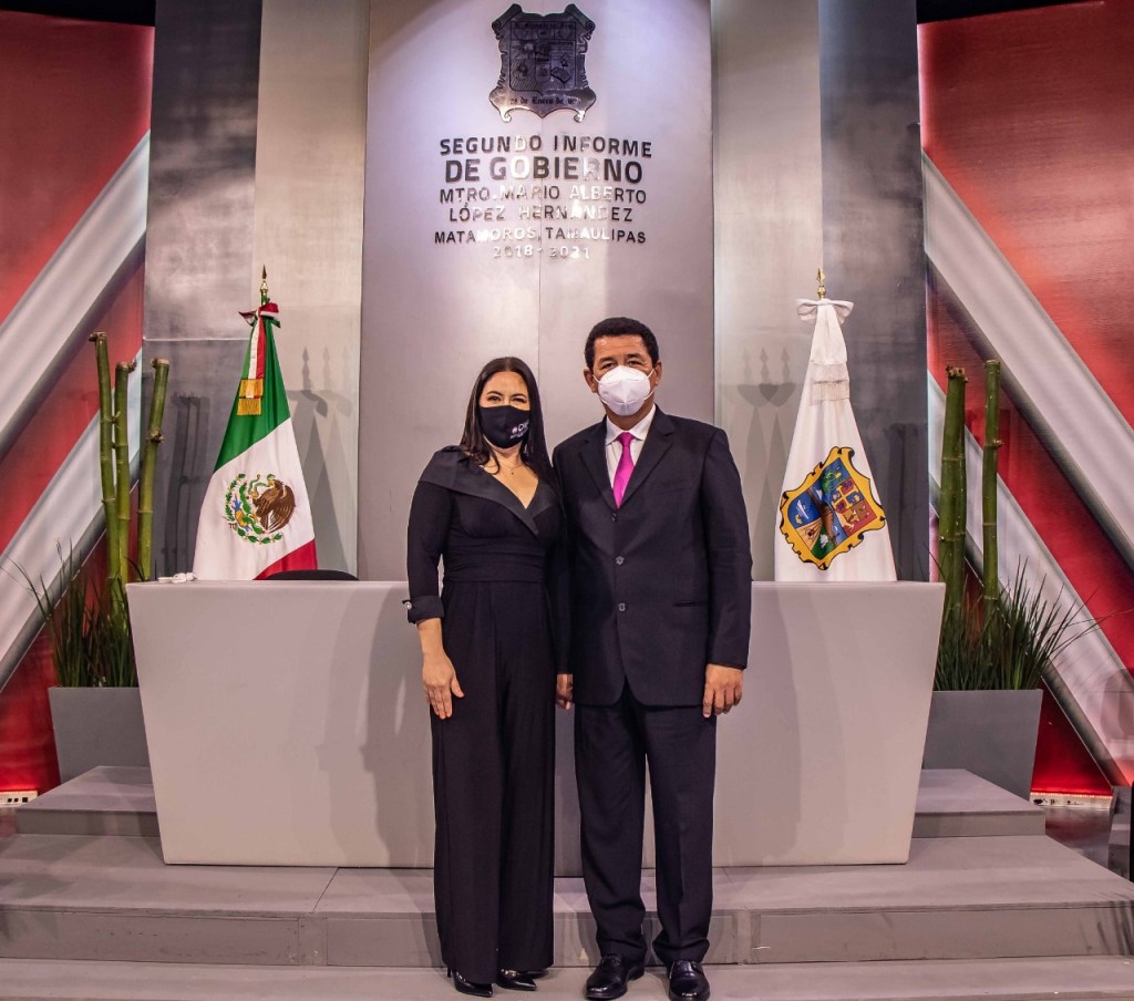 En su mensaje, López Hernández reconoció el trabajo de su esposa Marsella Huerta Sosa, quien con su gran sensibilidad y don de gentes “me ha ayudado junto a mis hijos a construir un Matamoros más humano, sensible y generoso para todos”.