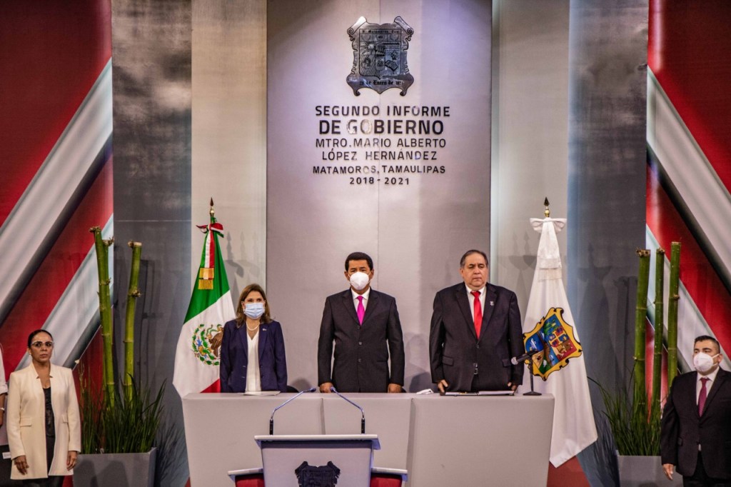 El alcalde Mario Alberto López Hernández rindió este lunes por la mañana su Segundo Informe de Gobierno en el cual convocó a los matamorenses a continuar unidos por Matamoros.