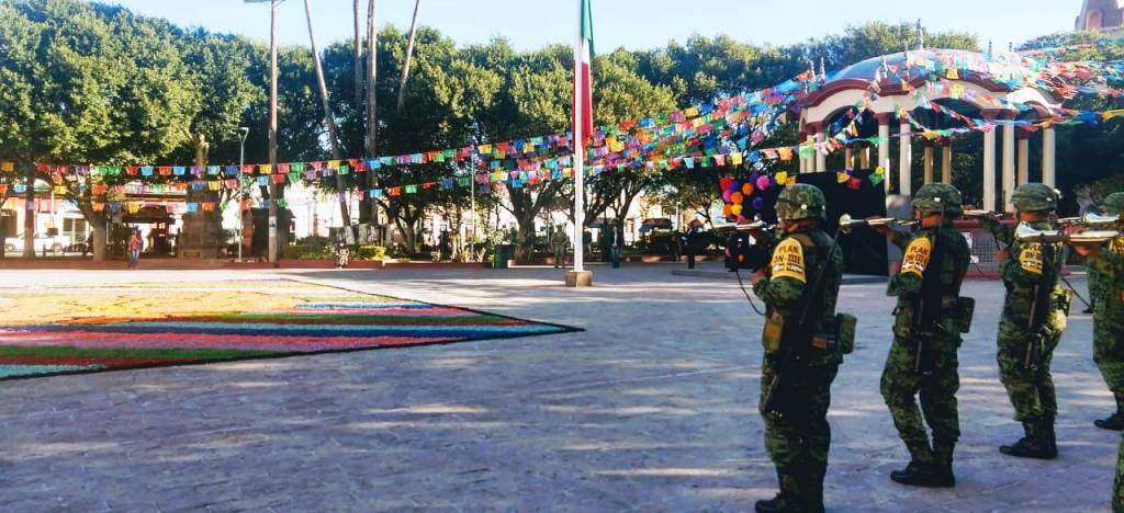 En la plaza principal se dieron cita autoridades del Gobierno Municipal y de las fuerzas castrenses para dar cumplimiento al mandato presidencial, de guardar luto nacional durante tres días, en honor a los aproximadamente 90 mil fallecidos durante la pandemia en México.