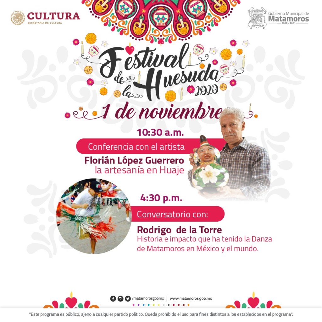 El gobierno municipal de Matamoros te comparte programación de hoy del Festival de la Huesuda 2020.