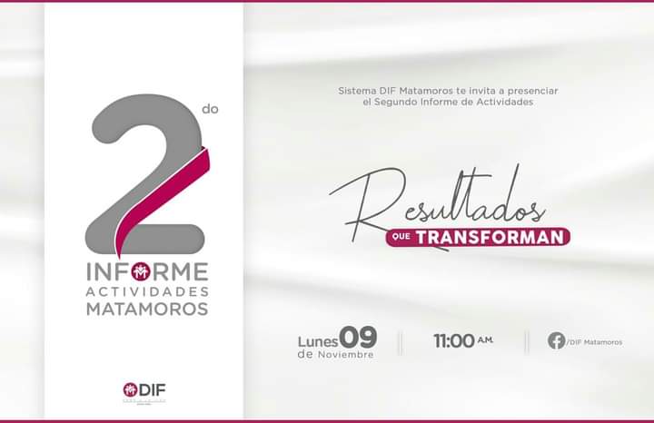Hoy, 11:00, por Facebook Live, es el II informe de la titular del DIF Municipal de Matamoros.