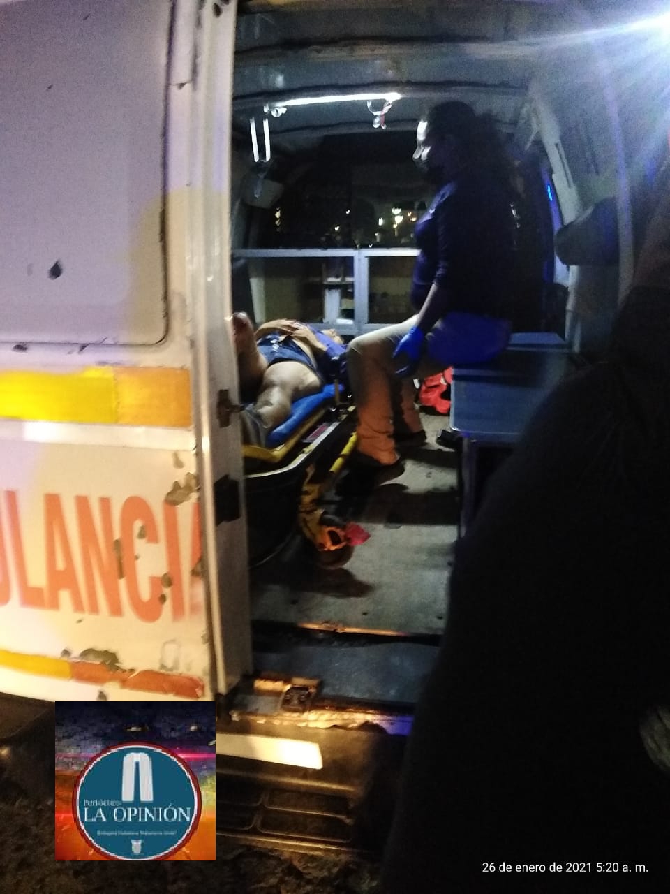 Paramédicos de protección civil fueron quienes la atendieron y trasladaron al Hospital General en demanda de atención médica.