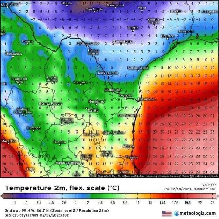 Precaución por la nueva masa de aire ártico, el termómetro estará bajando de los 0 grados centígrados hasta los -10° en Tamaulipas, Chihuahua, Coahuila y Nuevo León con sensaciones termicas de los -5° hasta los -15 grados.