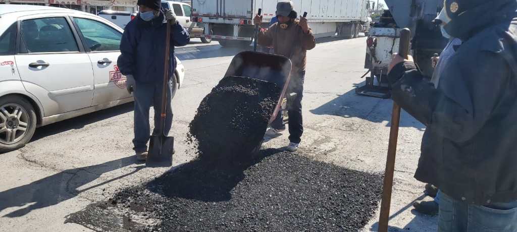 Al mejorar las condiciones climatológicas, las cuadrillas de trabajadores de obras públicas atienden con acciones de bacheo los diferentes puntos de la ciudad, principalmente en donde hay reporte de daños en el pavimento.