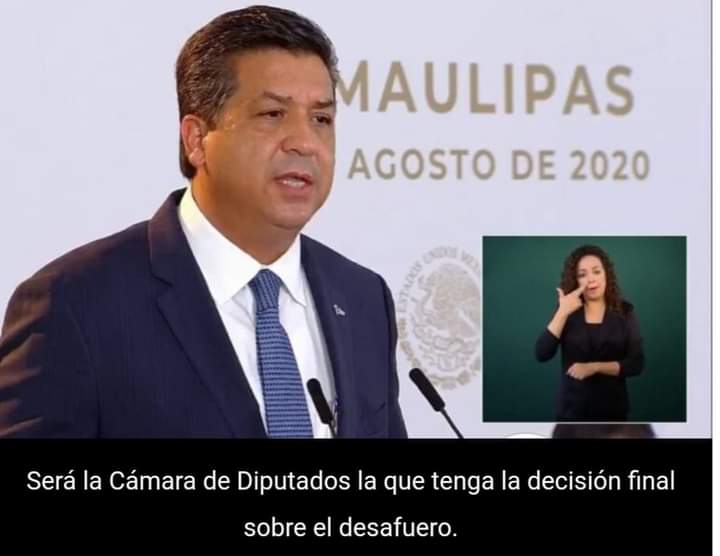 “En caso de que resulte positiva la solicitud de la Fiscalía General de la República, en el sentido de retirarle el fuero el gobernador del estado, la Cámara de Diputados así lo va a determinar y va a enviar la comunicación al Congreso del Estado de Tamaulipas”, señaló.