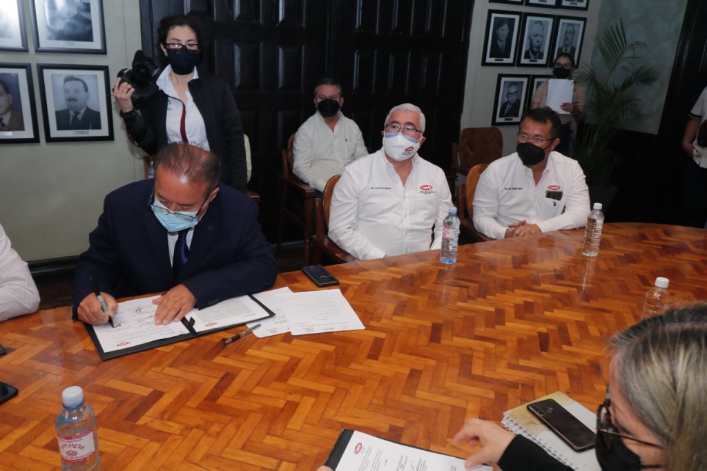 Durante una reunión encabezada por el Presidente Municipal y por la Presidenta del DIF, se ratificó el convenio de colaboración con la Cámara Mexicana de la Industria de la Construcción, delegación Matamoros, para seguir trabajando coordinadamente en acciones sociales que beneficien a las familias más vulnerables.