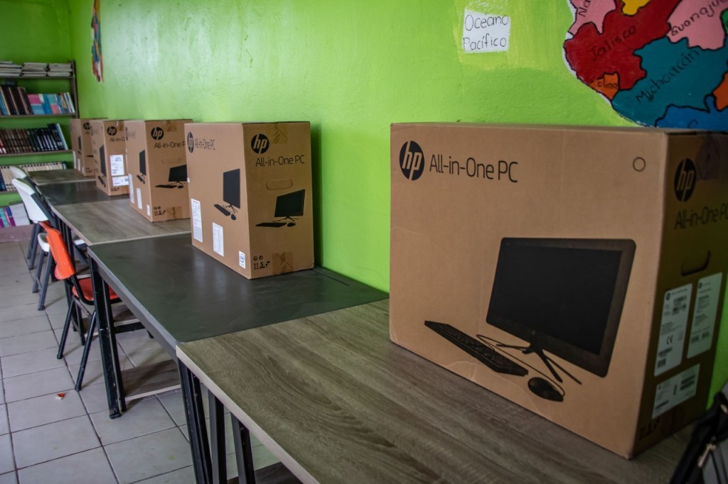 En el caso de la escuela primaria “Agapito González Cavazos”, indicó que el aula que se construyó, así como la entrega de cinco computadores y el equipamiento para el desayunador beneficia a más de 250 alumnos del turno matutino.