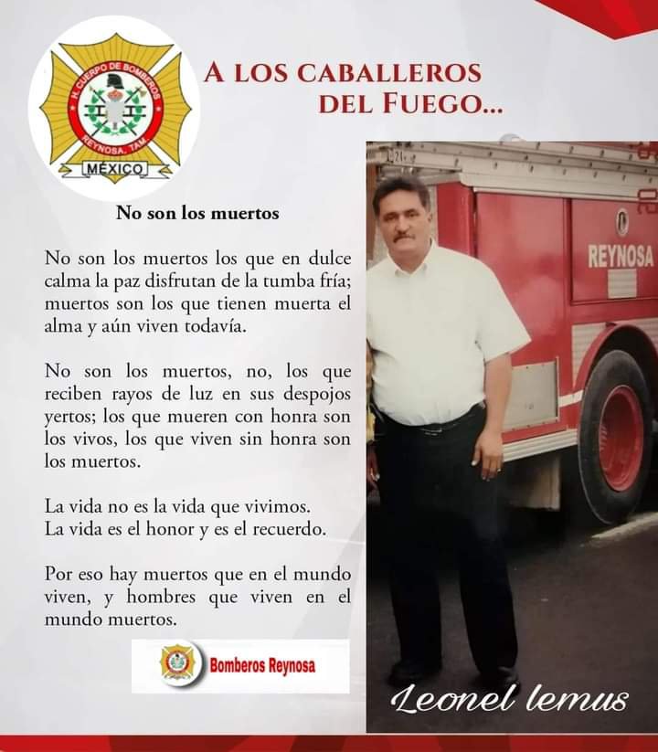 El día 17 de Marzo del 2021, perdió la batalla contra la muerte una gran persona, un admirable amigo, un ser humano que entregó más de 27 años de su vida a servir a la ciudadanía de Reynosa, Leonel Enrique Lemus Lemus, quien nació un día 22 de Agosto de 1950, destacó como Comandante en el Heroico Cuerpo de Bomberos en la ciudad de Reynosa.