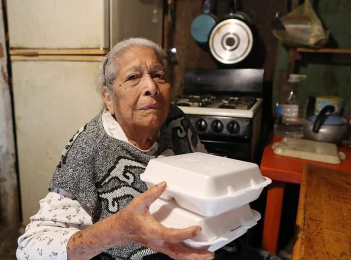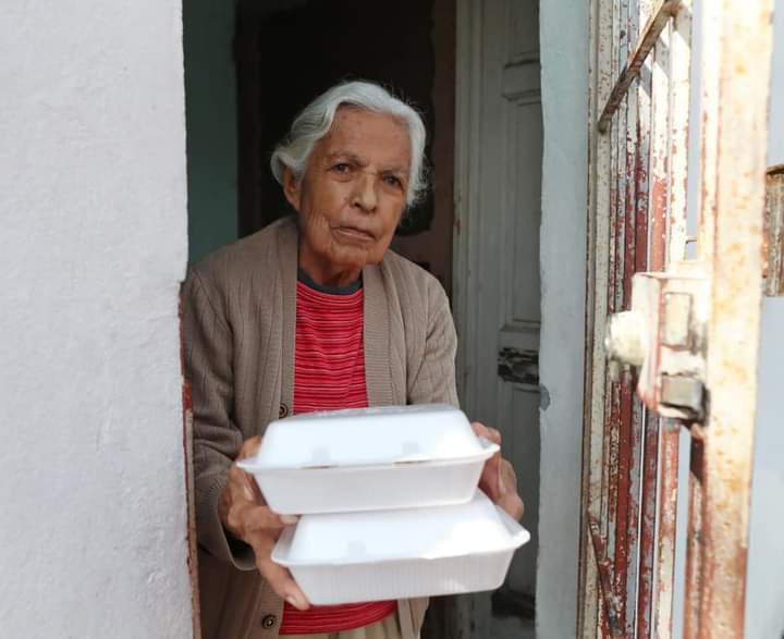 Gracias al apoyo que juntos realizamos, diariamente acudimos a los hogares de 150 abuelitos para llevarles alimentos que son preparados en el comedor de Casa Club del Adulto Activo.