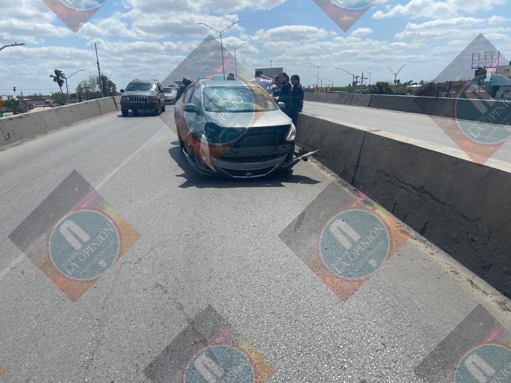 Por una distracción al estar al volante una joven de tan solo 18 años de edad perdió el control de su vehículo Nissan, Versa, modelo 2015, cuando circulaba arriba del puente vehicular de la avenida Roberto Guerra y Acción Civica.