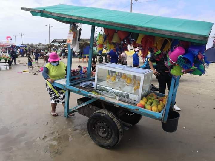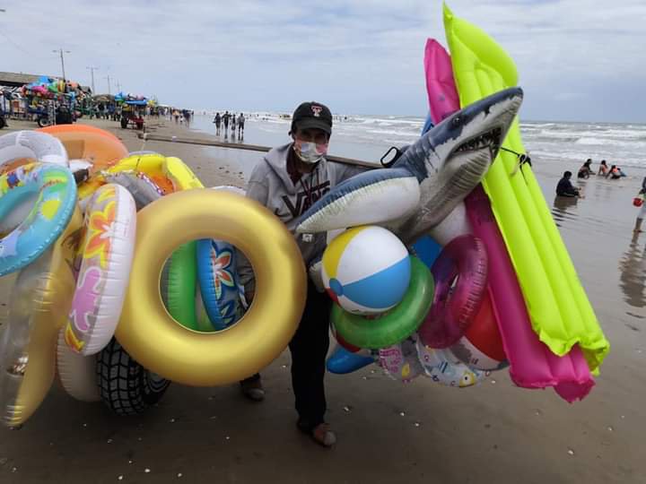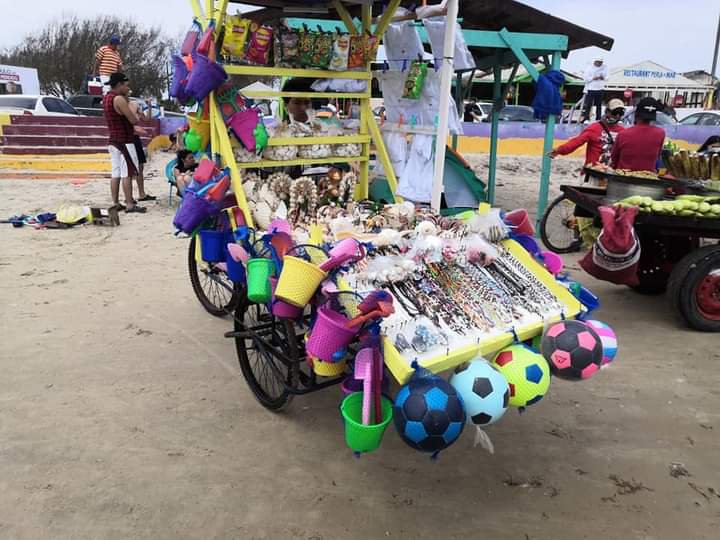Algunos, aprovecharon para comprar artesanías que comerciantes ofrecían además de implementos acuáticos, para la seguridad de quién quería disfrutar de nadar, y así ayudaban al comercio para generar ventas.