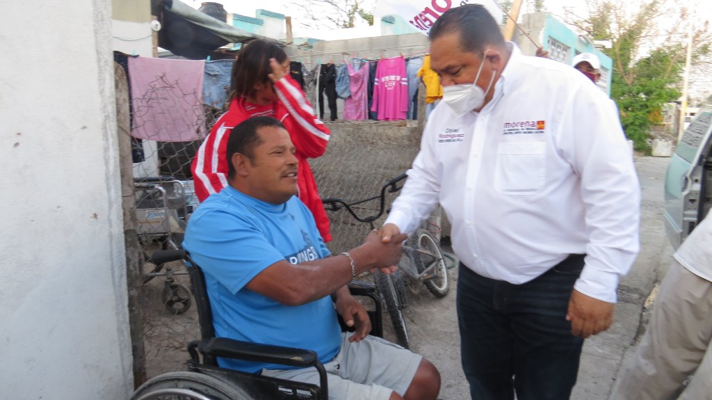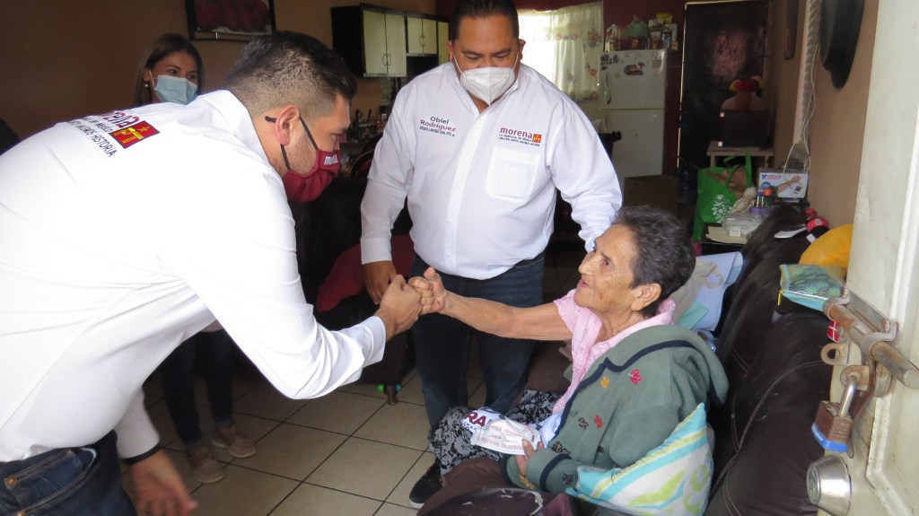 TAMBIÉN EL CANDIDATO SUPLENTE OBIEL RODRIGUEZ ALMARAZ «LA ABUELA CHONA» HIZO SU TAREA, EN EL FRACCIONAMIENTO LAS BRISAS, YA QUE MUCHA GENTE QUE LO CONOCE COMO UN GRAN GESTOR EN EL MUNDO DEL MICRÓFONO DESDE HACE MUCHOS AÑOS, LE ES RECONOCIDO POR SUS FANS Y TAMBIÉN SU CARISMA PARA TRATAR A LAS PERSONAS Y TAMBIÉN DANDO SU PALABRA DE APOYARLOS CON GESTORÍA DE ALGUNOS PROBLEMAS DE AGUAS NEGRAS, ENCALICHADO DE CALLES Y GESTIONAR QUE MAS SEGUIDO PASE EL CAMIÓN RECOLECTOR DE BASURA.