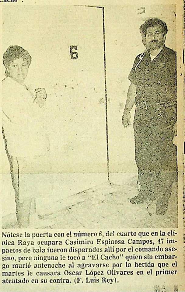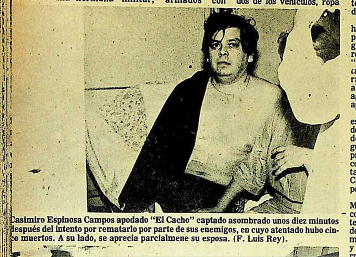 Buscando eliminar la competencia, el 16 de mayo de 1974 ordenó el asesinato de “el Cacho” pero si falló. De inmediato, los secuaces de Espinoza Campos internado en la clínica raya, Centro Médico ubicado en las calles Ocampo 3 y 2, precisamente frente a domicilio de lesionado.