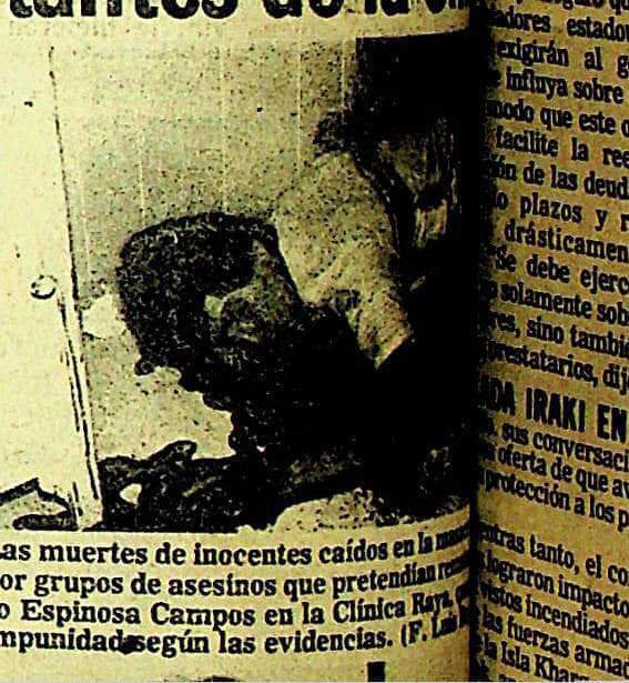 El Cacho Espinosa, había sido ingresado un día ante a la citada clínica ubicada en las calles Ocampo entre 2 y 3 de la zona centro casi frente a su guarida, tras ser baleado por el profesor Óscar Lopez Olivares, en las afueras de una residencia de la Colonia San Francisco.