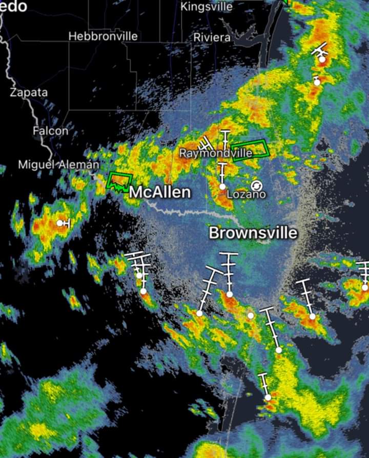Pero bueno, a lo que venimos: las tormentas siguen levantándose principalmente en la zona de Gustavo Díaz Ordaz, Camargo, M. Alemán, Reynosa, Río Bravo y Matamoros.