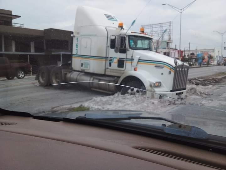 Tome sus precauciones al circular por la Sexta hay un tráiler atravesado, que callo a las zanjas donde se están removiendo los camellones.