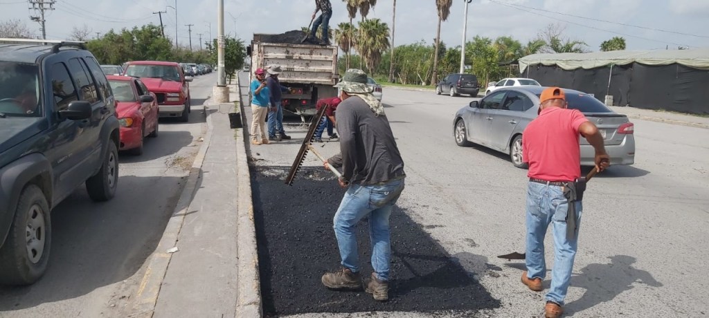 Este día las condiciones del clima están mucho mejor por eso desde temprana hora las cuadrillas de trabajadores salieron a las avenidas principales, para realizar acciones emergentes de rehabilitación de pavimentos, iniciando en la avenida Virgilio Garza Ruiz y Periférico.