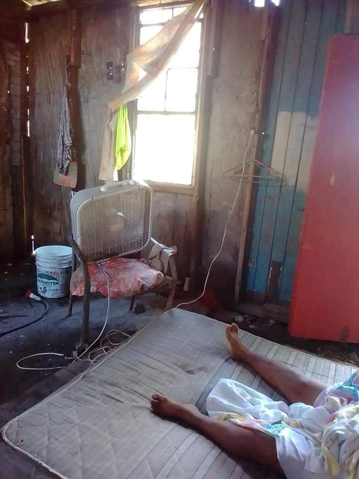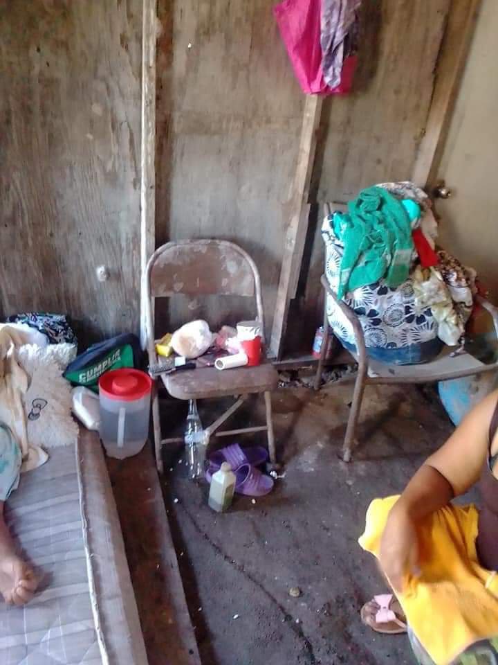 La situación en la que vive actualmente es muy precaria, tan es así que dormía en una tabla de triplay, pero sus vecinos piadosos le llevaron un colchón que pusieron sobre la tabla.