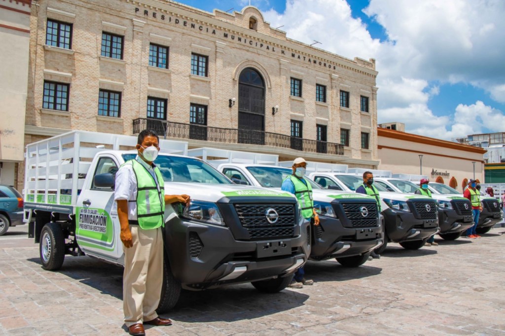 Para fortalecer las acciones encaminadas a la prevención de enfermedades causadas por el zancudo, este martes el alcalde Mario Alberto López Hernández entregó 10 camionetas y 10 bombas para realizar labores de fumigación en las colonias y ejidos de Matamoros.
