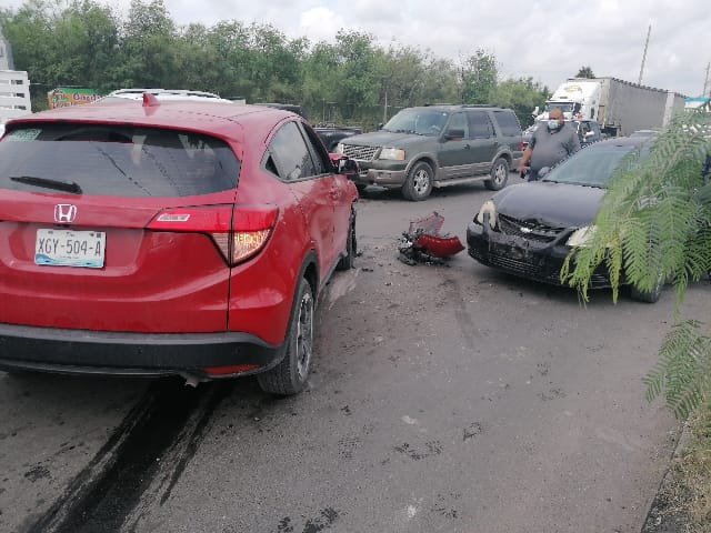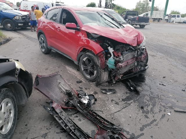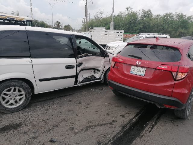 Los vehículos involucrados son una Camioneta Dodge Caravan de color blanco, una camioneta Honda CRV de color rojo y un auto Chevrolet Cobalt.