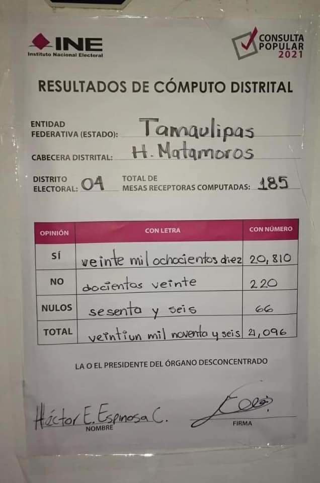 Los resultados finales indican que en Matamoros votó aproximadamente el 7.5 por ciento del padrón electoral según los datos oficiales.