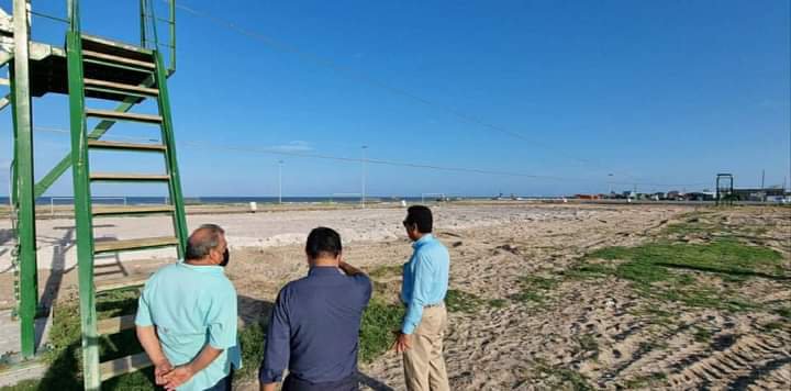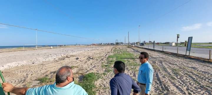 Durante una visita realizada a la Playa Bagdad, el Presidente Municipal supervisó los trabajos de construcción de una plataforma en donde será instalado el tobogán adquirido por el Gobierno de Matamoros y cuya instalación se había postergado a causa de la pandemia por COVID-19.