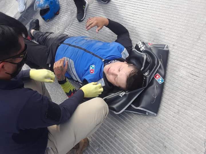 📷: GRAFICAS DEL ACCIDENTE QUE SE REGISTRO HACE UNAS HORAS EN EL INTERIOR DEL FRACCIONAMIENTO CASA BLANCA EN LAS CALLES MOHAMED Y RIO KIF, EN EL LUGAR UN REPARTIDOR DE DOMINOS PIZZA RESULTO LESIONADO TRAS ESTAMPARSE CONTRA UN VEHÍCULO, AL LUGAR ARRIBARON PARAMÉDICOS DE PROTECCIÓN CIVIL QUIENES ATENDIERON AL MOTOCICLISTA YA QUE PRESENTABA UNA LESIÓN EN UNA DE SUS PIERNAS.