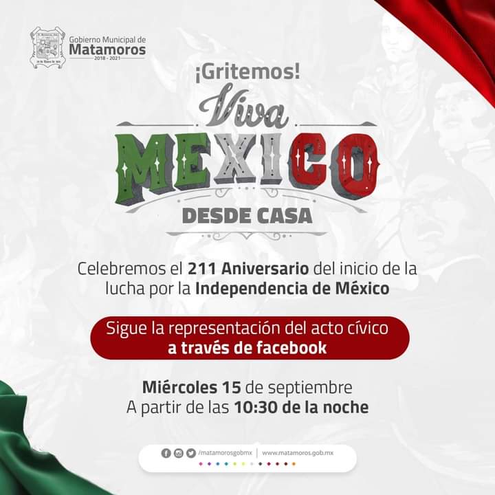 La presidencia municipal de Matamoros te invita a selebrar el 211 aniversario de la independencia de MÉXICO. . Publicado porlaopiniondematamorosseptiembre 15, 2021Publicado en #DIFMATAMOROS, #MUNICIPIO, Municipio Matamoros Desde Casa a través de la pagina oficial. Del municipio. Apartir de las 10:30 pm Compártelo: Haz clic para compartir en X (Se abre en una ventana nueva) X Haz clic para compartir en Facebook (Se abre en una ventana nueva) Facebook Haz clic para compartir en WhatsApp (Se abre en una ventana nueva) WhatsApp Haz clic para compartir en X (Se abre en una ventana nueva) X Más Haz clic para compartir en Telegram (Se abre en una ventana nueva) Telegram Me gusta Cargando... Relacionado Publicado por laopiniondematamoros Soy Reportero Con más de 15 años de estar laborando en diferentes medios de comunicación. Ver más entradas