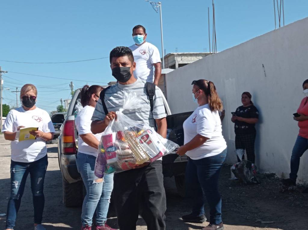 Matamoros, Tam.- Esta mañana se llevó a cabo la entrega de apoyos por parte de la asociación Ayúdame a Ayudar A.C, en el sitio se otorgaron despensas a familias completas, también se les dieron pañales para adulto a las personas que más lo requerían.