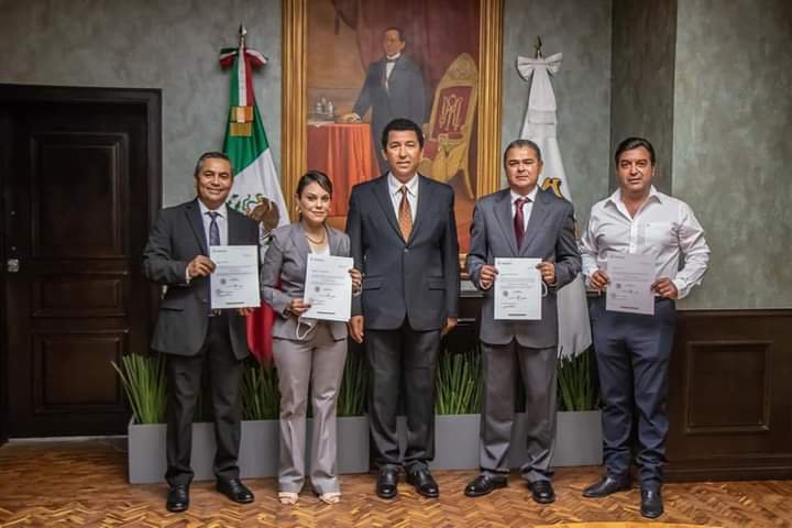 La ceremonia de honores se realizó en la plaza principal a las 6:30 horas de este viernes y enseguida el Alcalde se trasladó a la sala “Benito Juárez” para entregar nombramientos a los funcionarios que durante la primera sesión extraordinaria de Cabildo rindieron protesta, así como también a quienes lo acompañarán en su gabinete para el periodo 2021-2024.