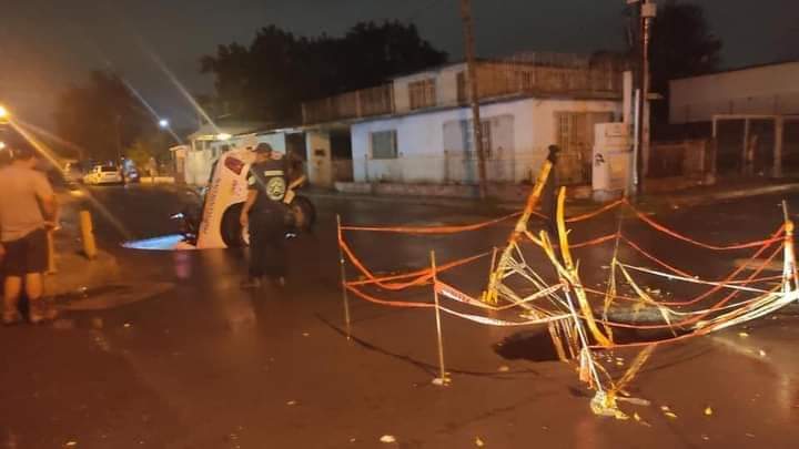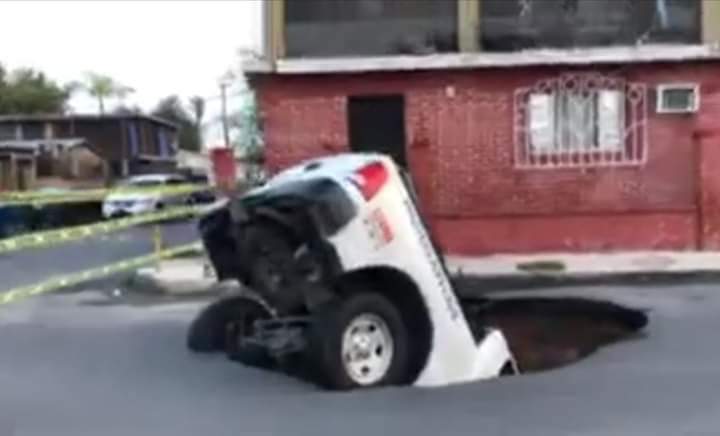 Al estarse estacionando, la unidad operativa en la que llegaban fue “tragada” al formarse un nuevo socavón con una profundidad aproximada a los tres metros.