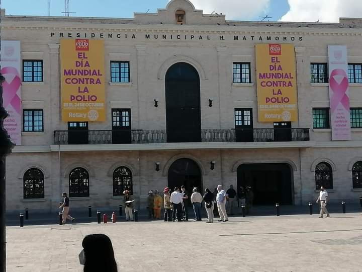 A las tres de la tarde, se registró una gran movilización policiaca, tras de que se recibiera una llamada anónima al 911, donde reportaban explosivos en la Presidencia Municipal de #Matamoros.
