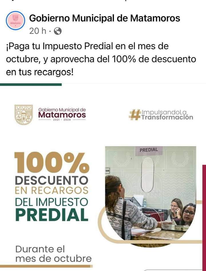 !Aprovechemos el descuento en el Predial !, si pagamos, ! habrá más obras ! Publicado porlaopiniondematamorosoctubre 19, 2021Publicado en #DIFMATAMOROS, #MUNICIPIO, Municipio Matamoros, notícias, noticias de Tamaulipas, noticias regionales, periodismo Compártelo: Haz clic para compartir en X (Se abre en una ventana nueva) X Haz clic para compartir en Facebook (Se abre en una ventana nueva) Facebook Haz clic para compartir en WhatsApp (Se abre en una ventana nueva) WhatsApp Haz clic para compartir en X (Se abre en una ventana nueva) X Más Haz clic para compartir en Telegram (Se abre en una ventana nueva) Telegram Me gusta Cargando... Relacionado Publicado por laopiniondematamoros Soy Reportero Con más de 15 años de estar laborando en diferentes medios de comunicación. Ver más entradas