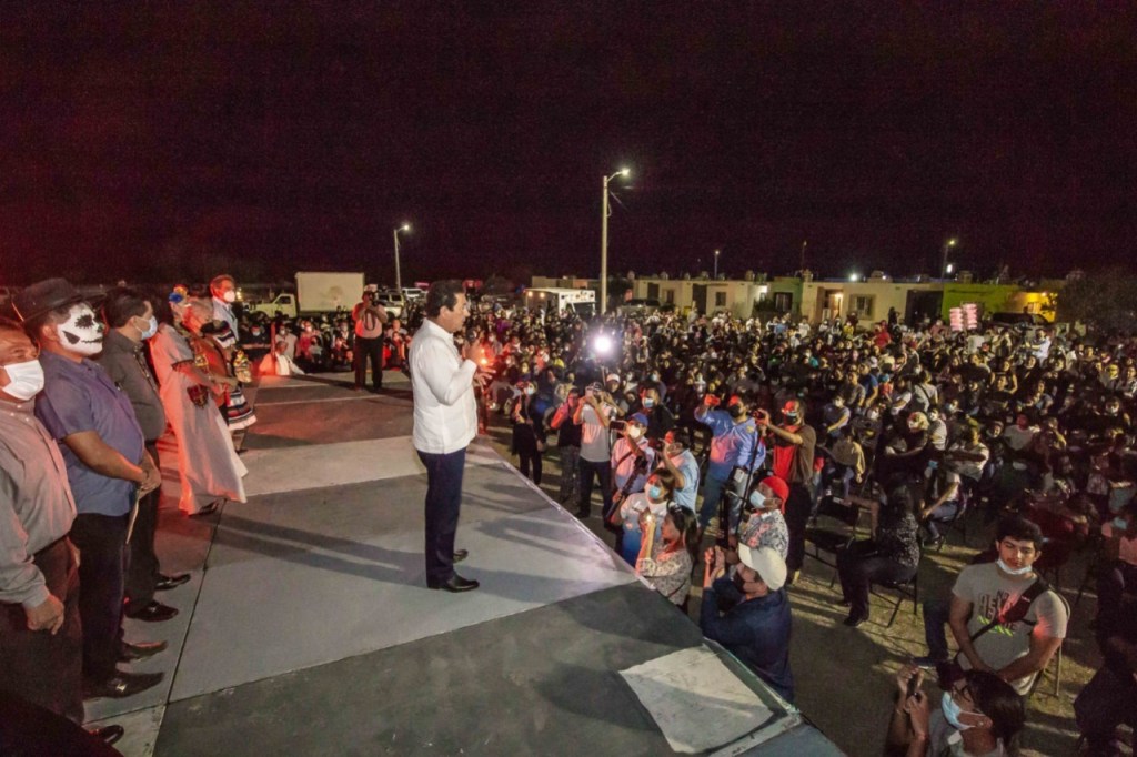 Esta noche de celebración del “Día de Muertos” el Presidente Municipal, Mario Alberto López Hernández, asistió al espectáculo Xantolo del Fraccionamiento Palmares, organizado en el marco del Festival de la Huesuda Matamoros 2021, permitiendo disfrutar a cientos de familias de la principal tradición cultural de México, reconocida a nivel internacional.