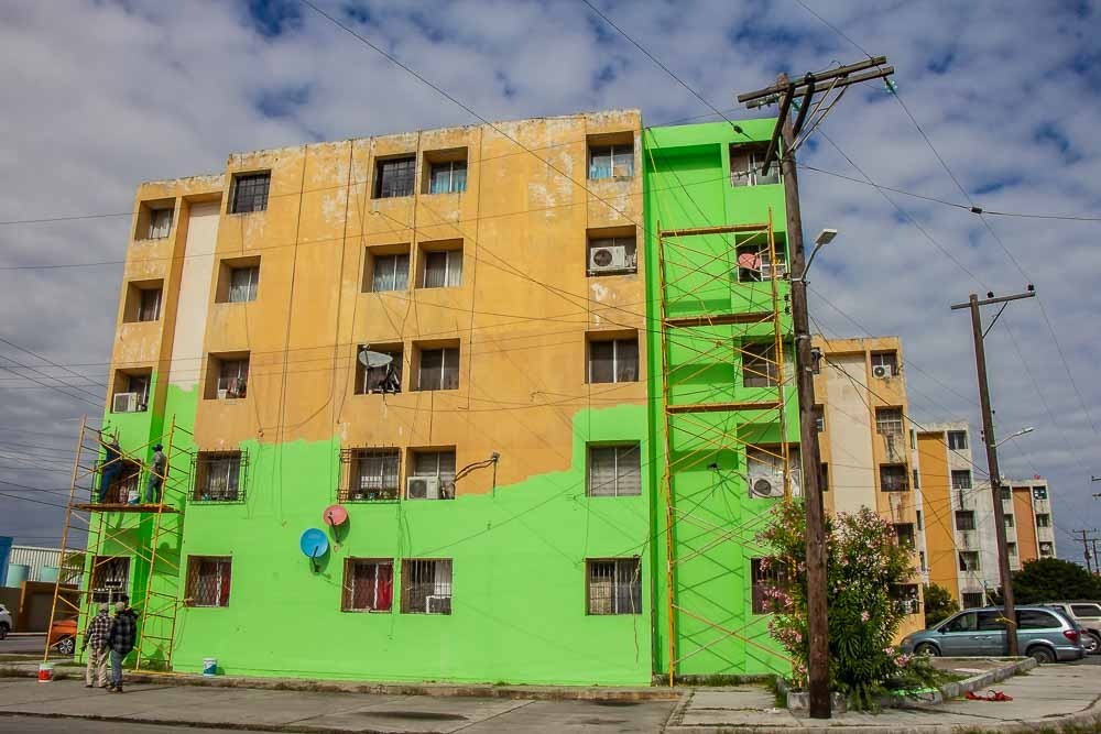 Además de los murales que integran la galería urbana, el Gobierno de Matamoros a través de la Dirección de Servicios Generales, con el apoyo de las empresas participantes y de los propios vecinos, trabaja en el pintado de los 10 edificios que forman parte del módulo habitacional, transformando completamente este lugar que tenía varias administraciones que no recibía el apoyo de sus gobernantes.