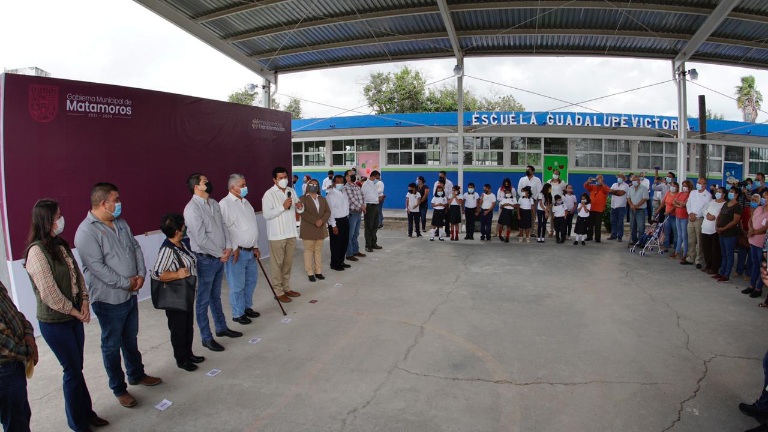 Mencionó que el Gobierno Municipal también está avanzando en la construcción de techumbres, sanitarios y bardas perimetrales, estimando que en el 2023 estará atendido en un 100 por ciento el rezago encontrado en su primer periodo constitucional como Alcalde de Matamoros.