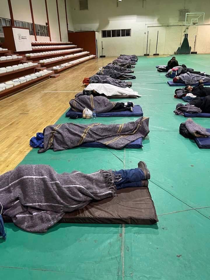 Ya estamos ligeramente abajo de los cinco grados centígrados en Matamoros, Tamaulipas y desde hace algunas horas se abrió como albergue el gimnasio de la alberca Chavez. Hasta este momento, 8:05 de la noche, a 19 personas en condición de calle se les ha dado refugio aquí, brindándoseles alimento caliente.